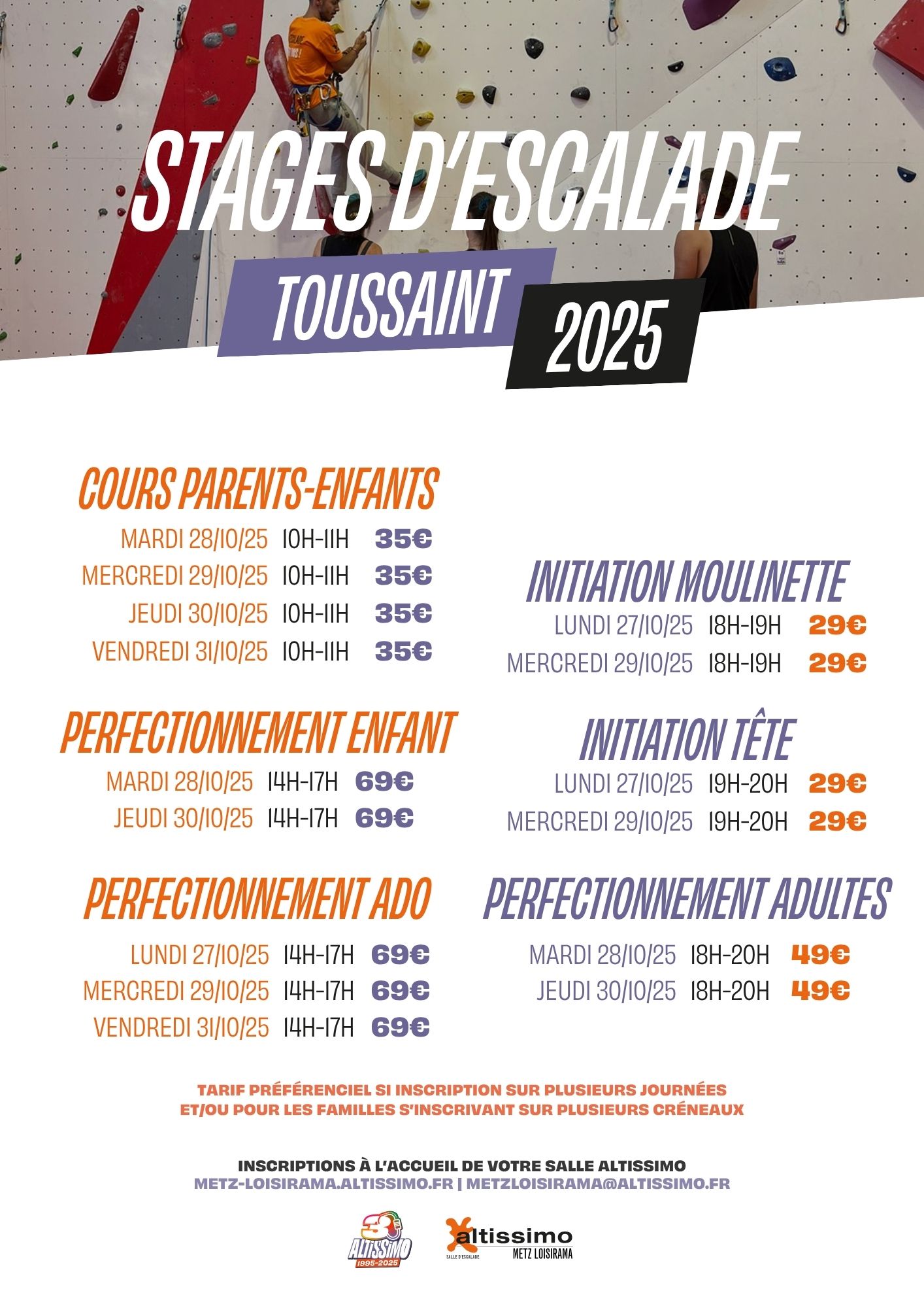 À la recherche d'une activité ludique pour vos enfants pendant les vacances ou envie de vous perfectionner ? Optez pour les cours et stages d'escalade organisés dans votre salle Altissimo Metz Loisirama !